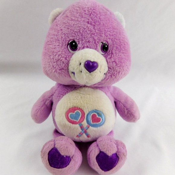 Vintage 2002 Care Bears Share Bear Plush Stuffed Animal 13" Purple Lollipops