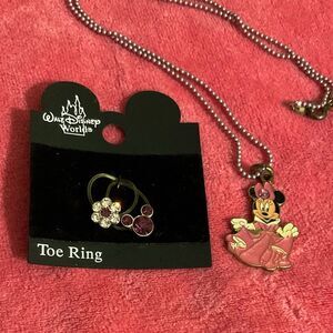 Vintage 2002 Disney World Parks & Resorts Souvenir TOe Ring and Necklace Minnie
