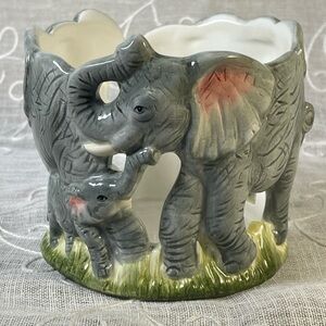 Vintage 2002 Elephant Family Ceramic Candle Votive Holder.