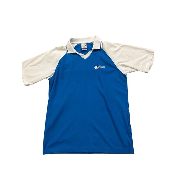 Vintage 2002 Fifa World Cup Korea Japan Soccer Blue & White Polo Shirt Medium