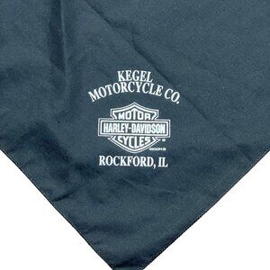 The vintage 2002 Harley Davidson Bandana Kegal Motorcycle Rockford, IL features a classic black and orange design that is synonymous with the iconic American motorcycle brand. Made in the United States, this bandana is a must-have for any Harley-Davidson enthusiast or collector. With its patriotic and nostalgic appeal, this piece captures the spirit of the Harley-Davidson brand and its ties to the American motorcycle culture.