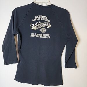 Vintage 2002 Harley Davidson Top Women's Large Black Gold Bikercore Daytona USA