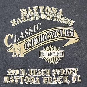 Excellent preowned condition. No flaws found. See photo for 2002 marking under "Davidson" on the front. 2001 marking under HD logo on back. Slightly faded from a few washings. Daytona Beach screen print on front and back.