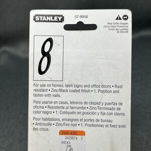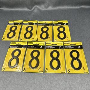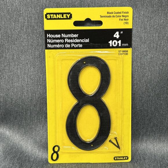 Vintage 2002 Stanley house number “8” black 4 inch number in original packaging, rust-resistant screws included, perfect for retro home restoration or NOS hardware collectors. Multiple are available, buy more & save more.