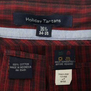 Vintage 2002 Tommy Hilfiger Button Front Shirt Mens 16.5 Holiday Tartans Plaid Cotton
