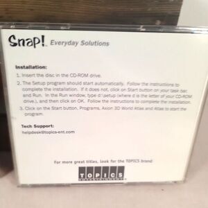 Discover the world with this vintage 2003 3D Atlas PC CD-ROM software by SNAP!. Explore over 1.6 million places and states with interactive maps and atlases. Perfect for geography enthusiasts, language learners, and curious minds.
