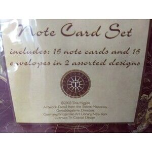 Lovely Note Card Set in Display Case with Tassel featuring artwork detail from the Sistine Madonna, Gemaldegalerie, Dresden, Germany / Bridgeman Art Library, New York. Set has 16 cards and envelopes and 2 assorted designs.