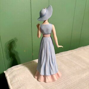 Camille Porcelain Figurine from Home Interiors. Approximately 9" H. Handcrafted in Thailand. Elegant lady with with reddish blonde hair and pearl necklace and sky blue bonnet adorned with pink flowers. Suitable for all occasions. Produced in 2003. Figurine is in good condition with no cracks or chips or paint flecks seen. Home Interiors & Gifts Inc.
