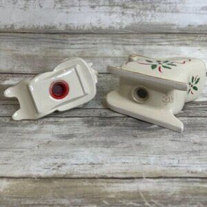 Vintage 2003 Lenox Holiday Reindeer & Sleigh Stackable Salt and Pepper Shakers