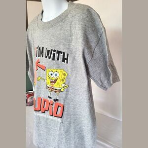 Vintage 2003 SpongeBob SquarePants boys ash-gray tee featuring SpongeBob and Patrick with the “I’m With Stupid” graphic.
