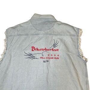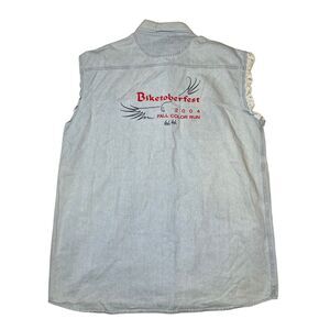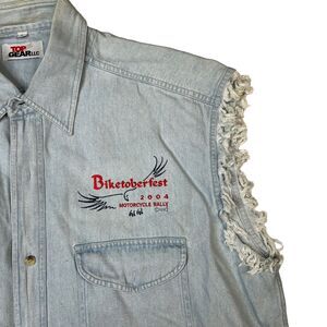 Vintage 2004 Biketoberfest Chambray Embroidered Cut Off Shirt FLAW Blue Large