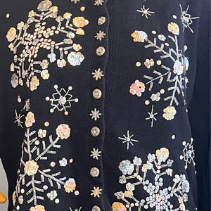 Vintage 2004 Black Snowflake Sequins Cardigan Size M/L