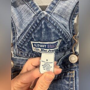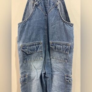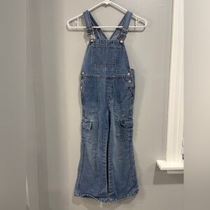 Vintage 2004 Old Navy Little Girl Size 6 Flare Denim Overalls cargo. One superficial pulled stitch in front but doesn’t affect wear. Otherwise excellent preowned condition and could fit bigger than a 6
