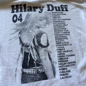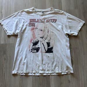 Vintage 2004 Hilary Duff 2004 Tour White Parking Lot Faded Rap Tee Shirt Sz XL VTG Retro Rare Boot leg. Anvil Blue Tag. The shirt is in fine overall condition. There are a few marks at the bottom and a small hole as well. See photos for measurements and extra details. Feel free to message me with any questions.