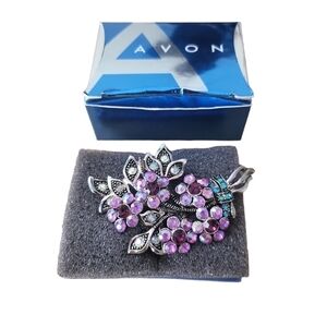 Vintage 2005 AVON Sparkling Purple & Lavender Flower Pin Mint Condition with Box