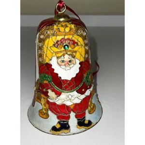 Vintage 2005 Christmas Cloisonne Enamel Large Bell Santa Holiday Ornament