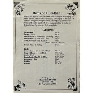 Vintage ©2005 - Four Corners Quilts - Birds of a Feather Wall Hanging Quilt Pattern - Size 32" x 18"