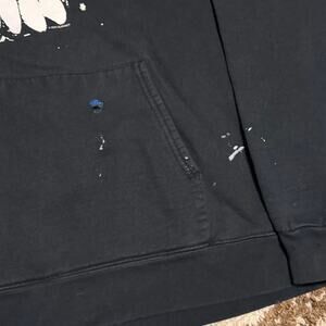 Has paint stains and holes throughout front, please see pictures closely. Size tag is faded out, see measurements above for accurate sizing.