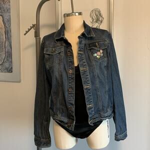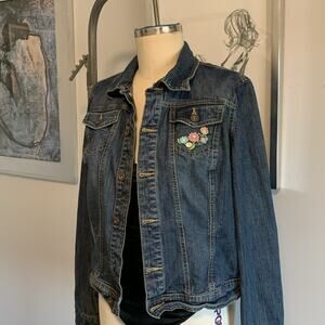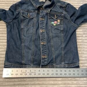 Vintage 2005 Tommy Hilfiger Floral Embroidered Denim Jean Jacket Women's Medium