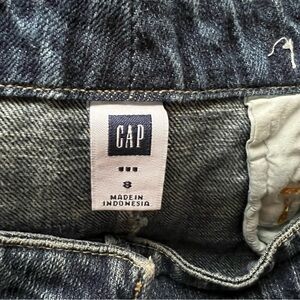 Vintage 2006 Gap Denim distressed mini skirt. 100% cotton. Stone washed. Frayed hem. Zipper and slide closure. 3 front pockets. 2 back pockets. Size 8. Waist approx. 16” flat lay. Length 16”. Hips approx. 19” flat lay. Great condition. Fast shipping.