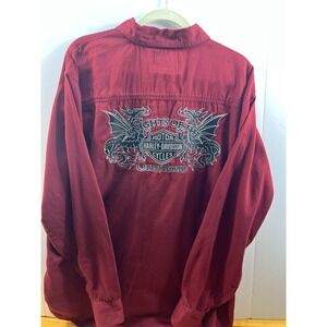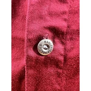 Crafted in a deep burgundy red, this shirt has a soft, heavy cotton feel and is finished with Harley-Davidson branded metal snaps and a chest pocket. It's a must-have for collectors, riders, and vintage fashion lovers.