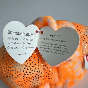 Vintage 2006 Orange & Silver "Reefs" Plush Stuffed Animal Beanie Babies NTW