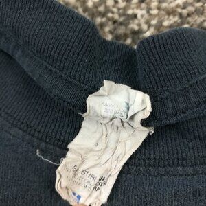 Noticeable fading/discoloration. Front right sleeve has a tiny spot of some kind of substance stuck to it that can probably be peeled off.