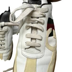 Vintage 2007 Gucci Sneakers Mens Size 11 White Cream Leather 162681