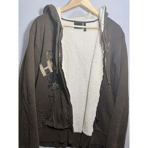 Vintage 2007 Hurley Y2K Fleece Sherpa Zip Up Hoodie Brown Men’s L Logo Graphic