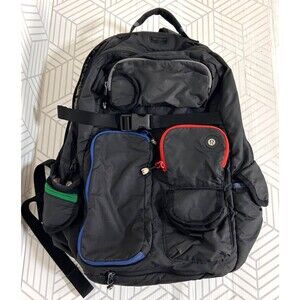 Vintage 2007 Lululemon Cruiser Backpack Black Red Blue Pockets Laptop Rare