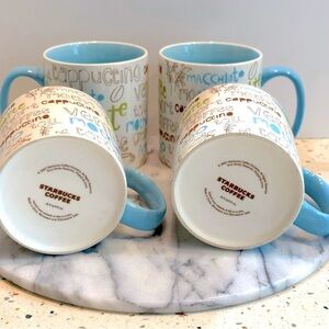 Vintage 2007 Starbucks Blue Coffee Script Large Coffee Mug Set