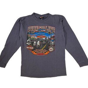 Vintage 2008 Harley-Davidson Ride For Life Long Sleeve T-Shirt Gray Size L
