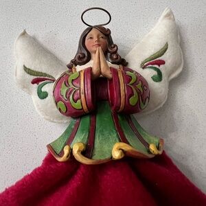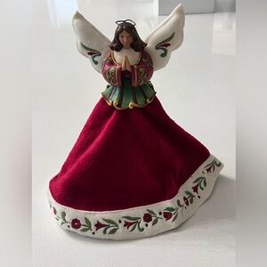 This Jim shore Angel tree topper is from 2008. It’s in good condition and comes without the box. It’s beautiful and would look great on top of a tree or any table setting. It measures 10” x 5”.