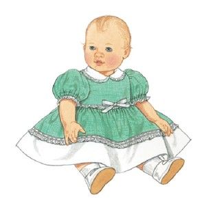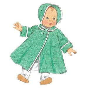 Dress your 12" to 22" baby doll in vintage clothing with our Simplicity Sewing Pattern by Teri. Featured in this kit are the templates for a coat, dress, hat, slip, panties, overalls, top, hat and pajamas.