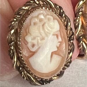 Vintage 20-12K Gold Filled & Shell Carved Edwardian Cameo Earrings. Screw Back.