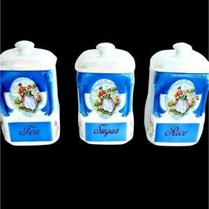 3 Large canisters: (Rice, Sugar, Tea) 8" x 4.5" x 4.25"