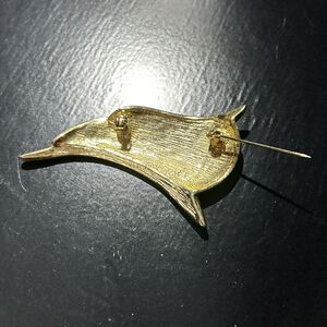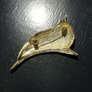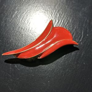 Vintage 2-1/2” Red Enamel Gold Tone Art Deco Brooch
