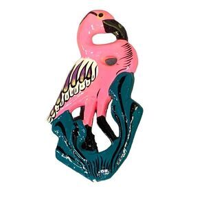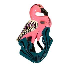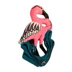 Vintage 2-1/2" Pink Flamingo in Grass Hand Painted Brooch