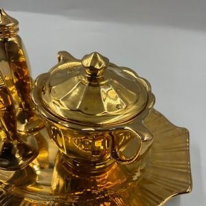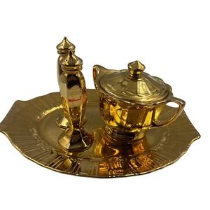 Vintage 22 Karat Gold Serving Tray Lid Dish Salt Pepper Shakers GLAM MidCentury