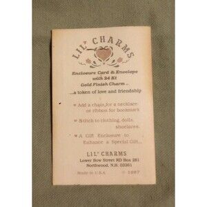 Thin 24 k gold sheep finishing charm. New in bag. Made by Lil Charms in New Hampshire. Card is dated 1987. Charm is small (see picture with penny).