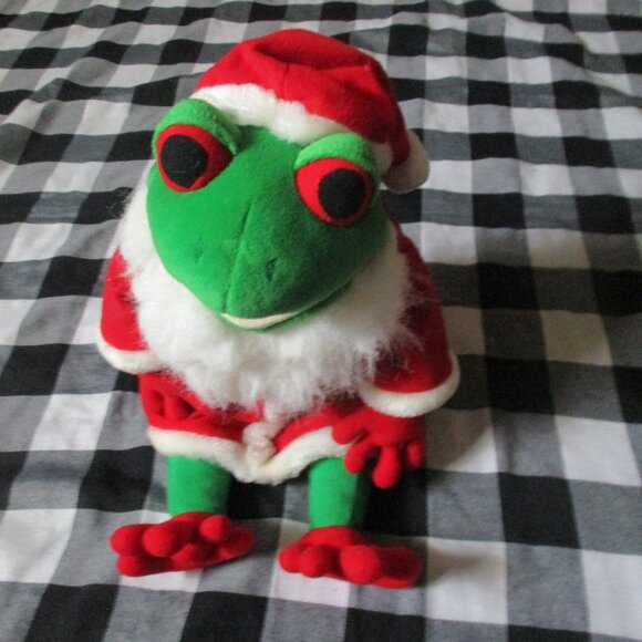 Vintage 24K Frog Culture Santa Outfit Plush Tree Frog Christmas 1996