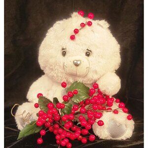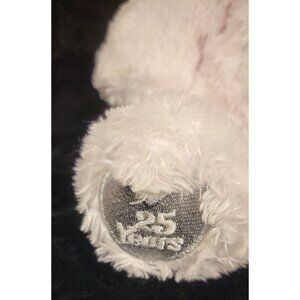 This adorable special collector's edition Care Bear was released in 2007 to celebrate the 25th anniversary of the Care Bears franchise. It is a retired bear and is considered vintage, featuring faux white fur and sterling silver accents such as a silver-plated nose and hip heart, a heart on its belly and feet, and Swarovski crystals in its eyes to add that extra special sparkle. It was never used, only bought for collection, and still has the 25th anniversary tag attached. Please see the provided photos for further details. (Artificial plants not included.)