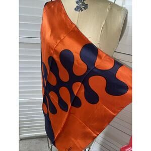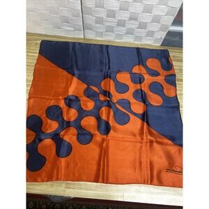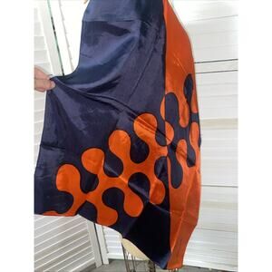Vintage 26” Square Geometric Abstract Christian Orange Black Satin Scarf