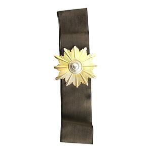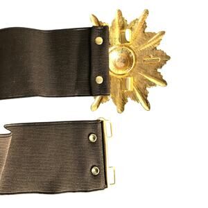 Vintage 27" Belt Black Gold Sunburst Hook Closure Wide Elastic Band Old Money