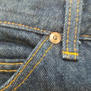 Super cool pair of true vintage 5 pocket high waisted denim jeans, likely from the late 70s or early 80s. Five pocket dark blue denim with orange thread. All you need are roller skates ! Vintage size is juniors 10-11, approximates a current 4 (?) please see measurements. 100% cotton, made in the USA.