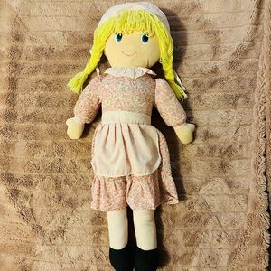 Large Vintage Cuddle Wit Cloth Rag Doll Green Pink Dress Hair Yarn Braids Plush