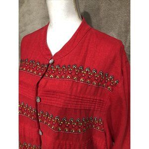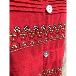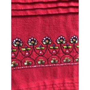 Vintage 2X Plus Red Floral Embroidered Short Sleeve Cotton Top Blouse #390. Excellent preowned condition.