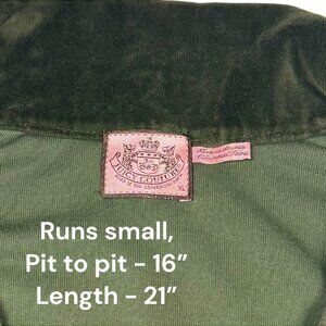 Vintage 2YK Juicy Couture Track Suit Top Sz.M Olive Green Velour Full Zip Pocket