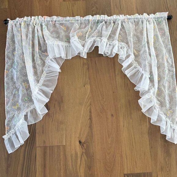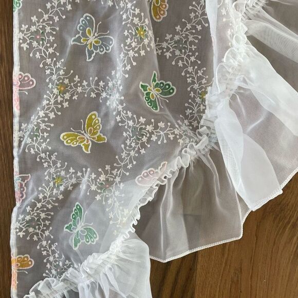 Vintage 2pc Pastel Butterfly Sheer Voile Ruffle Curtains Valance