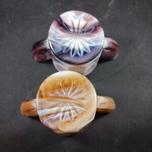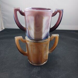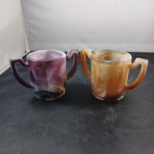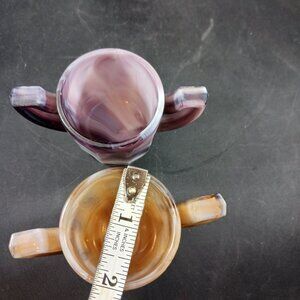 Vintage 2pcs Slag Glass Imperial Brown and Purple Small Toothpick Holders